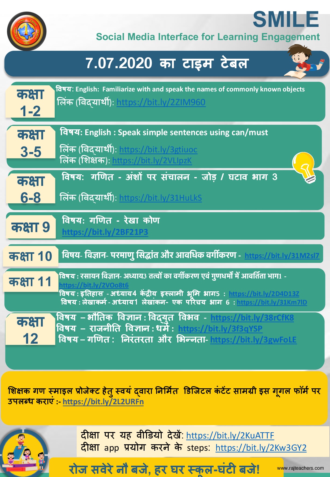 SMILE | बच्चों के लिए | कक्षा 1-12 | दिनांक : 07.07.2020