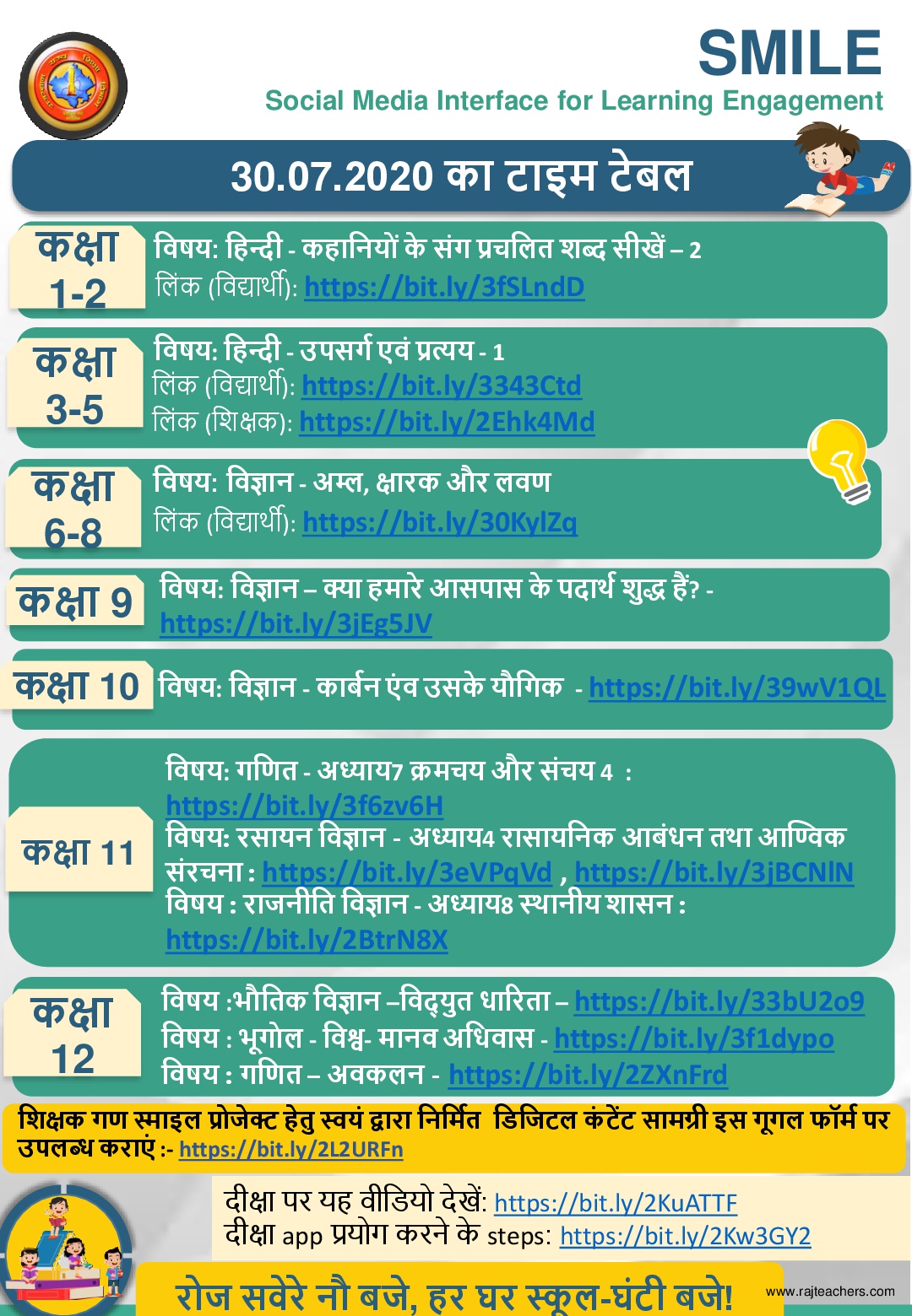 SMILE | बच्चों के लिए | कक्षा 1-12 | दिनांक : 30.07.2020