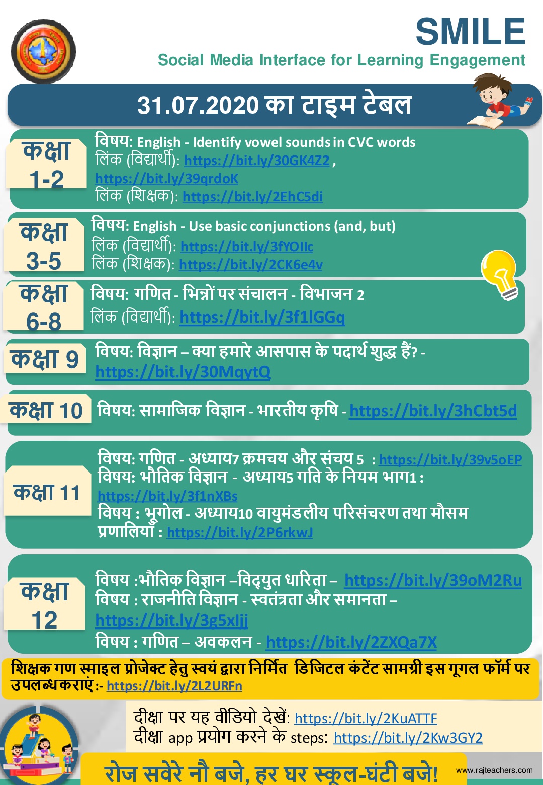 SMILE | बच्चों के लिए | कक्षा 1-12 | दिनांक : 31.07.2020